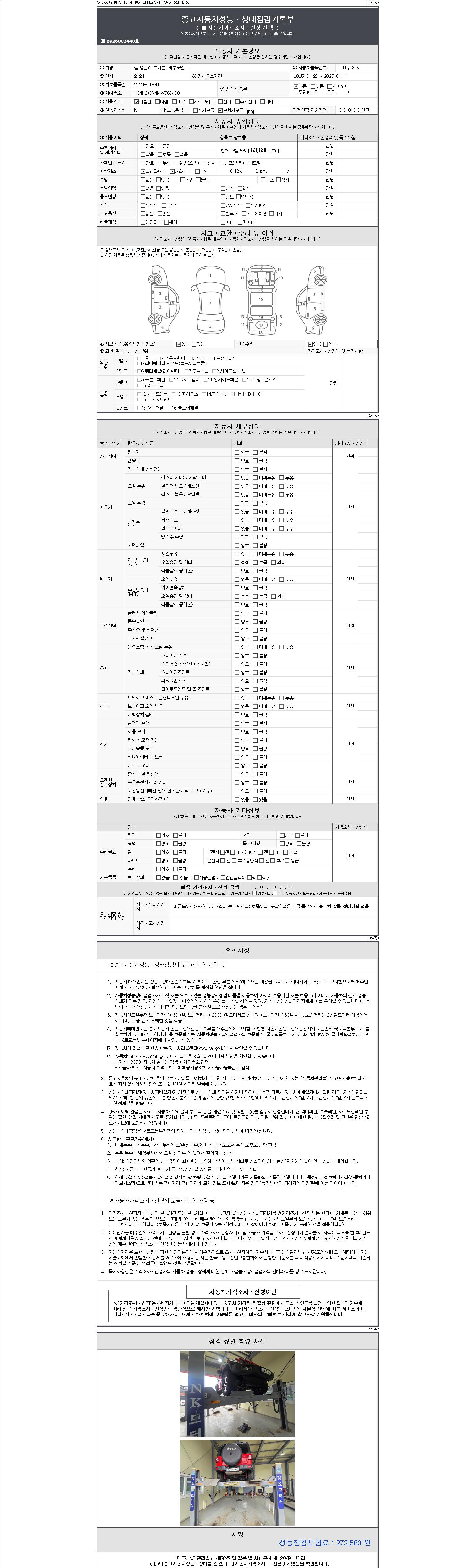 -중고자동차 매매업자를 통해 차량을 구입하실 경우 반드시 "중고자동차 성능, 상태점검 기록부"를 교뷰 받으셔야 하며, 매매업자는 반드시 의무 교부 하여야 압니다.