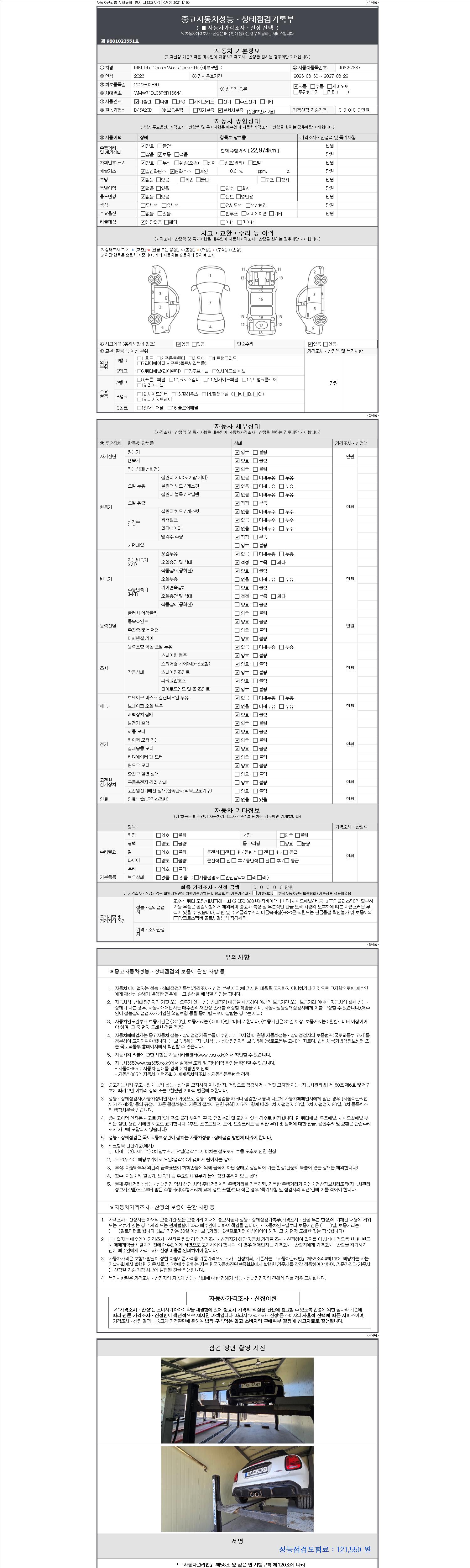 -중고자동차 매매업자를 통해 차량을 구입하실 경우 반드시 "중고자동차 성능, 상태점검 기록부"를 교뷰 받으셔야 하며, 매매업자는 반드시 의무 교부 하여야 압니다.