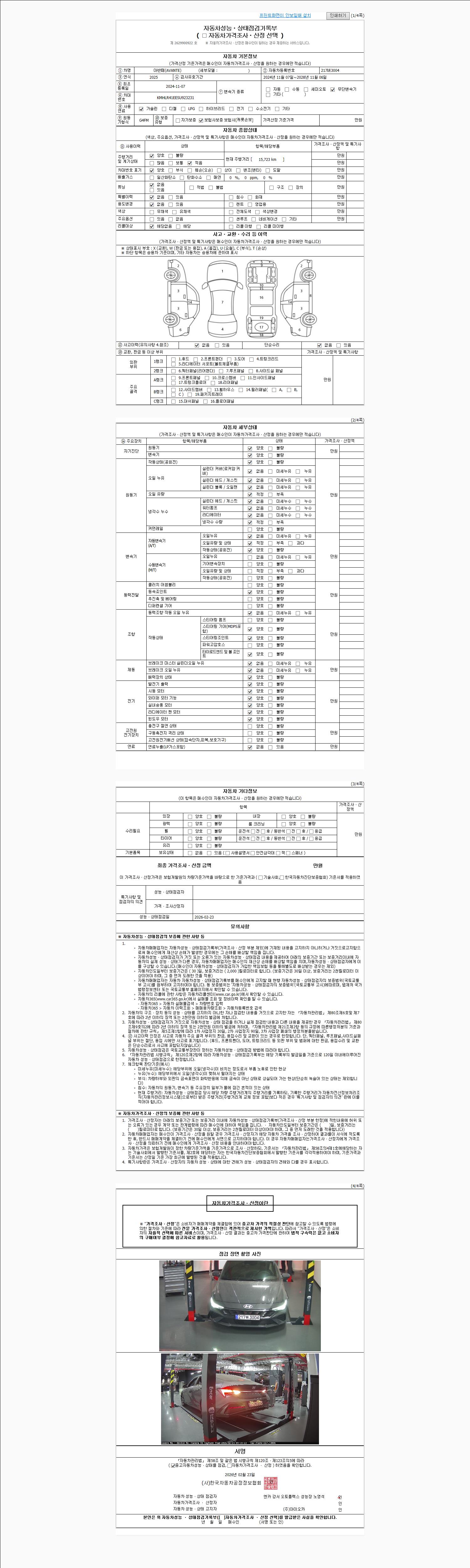- 2. 차량 등록증이나 성능점검지 등을 상담자에게 요청및 확인하시고 사전에 미리 점검 하시기를 권유드립니다.