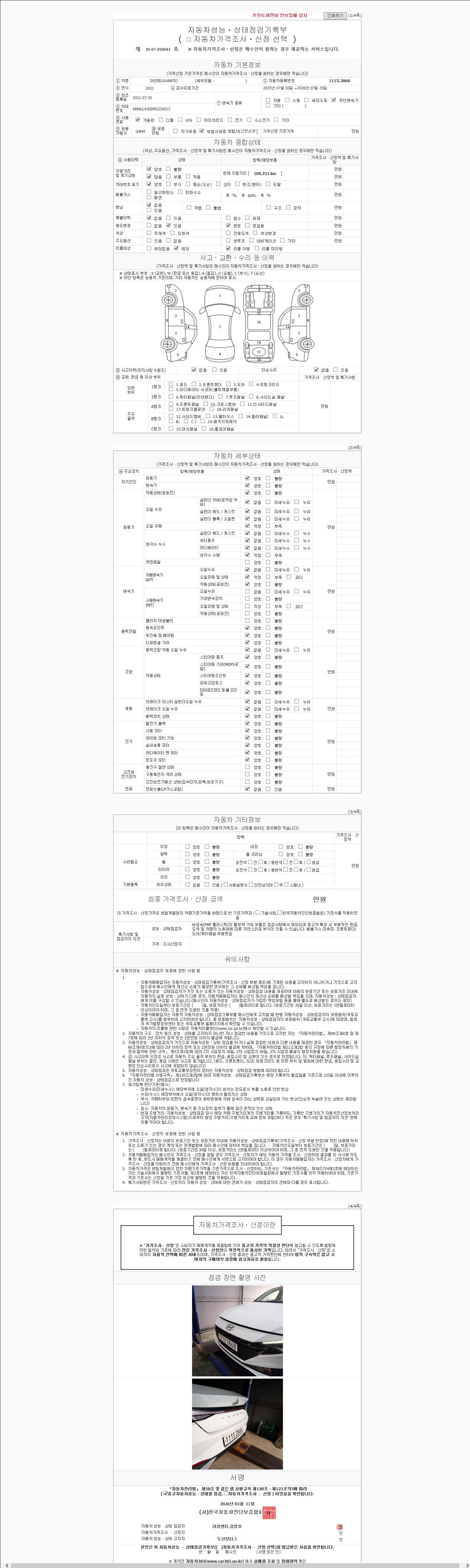 -중고자동차 매매업자를 통해 차량을 구입하실 경우 반드시 "중고자동차 성능, 상태점검 기록부"를 교뷰 받으셔야 하며, 매매업자는 반드시 의무 교부 하여야 압니다.