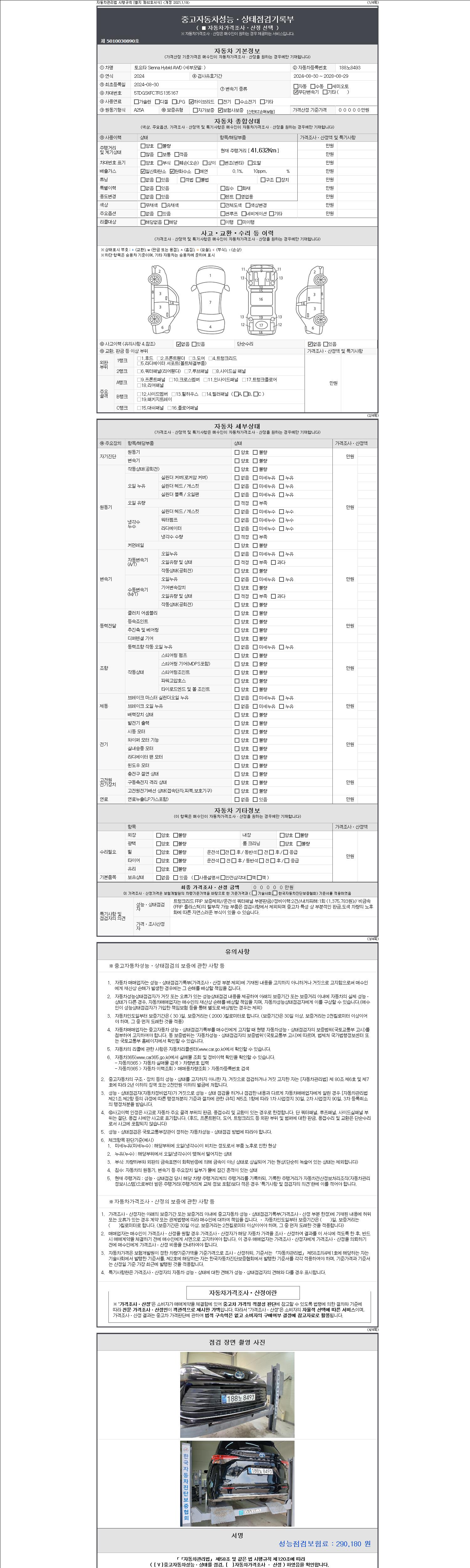 - 사고유무 : 성능기록부 참조