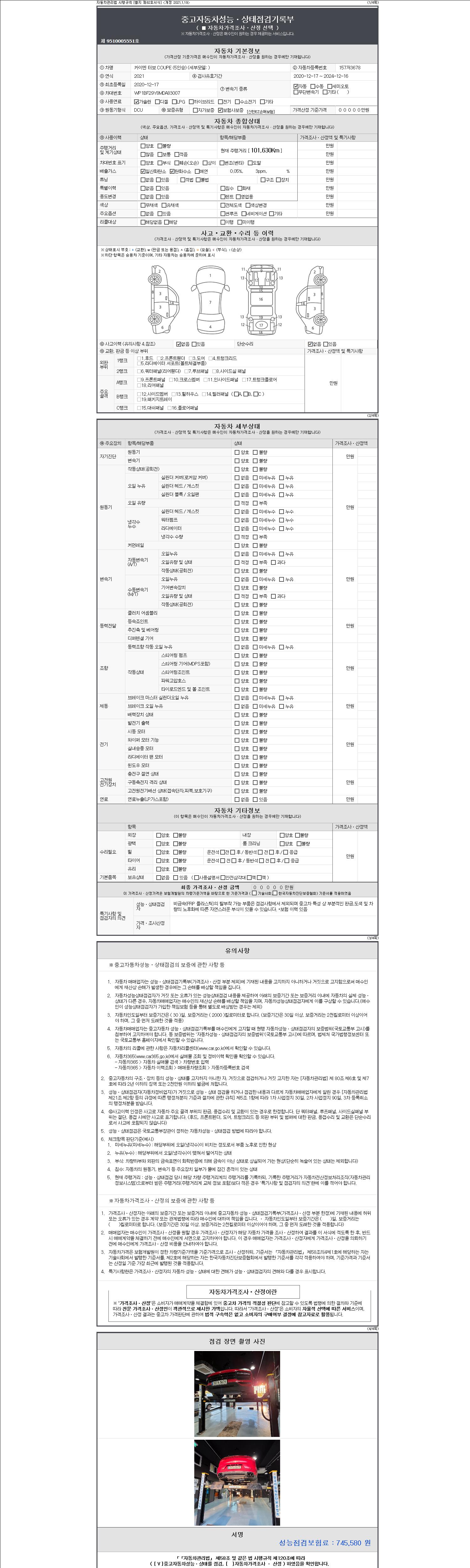 • 2. 차량 등록증이나 성능점검지 등을 상담자에게 요청및 확인하시고 사전에 미리 점검 하시기를 권유드립니다.