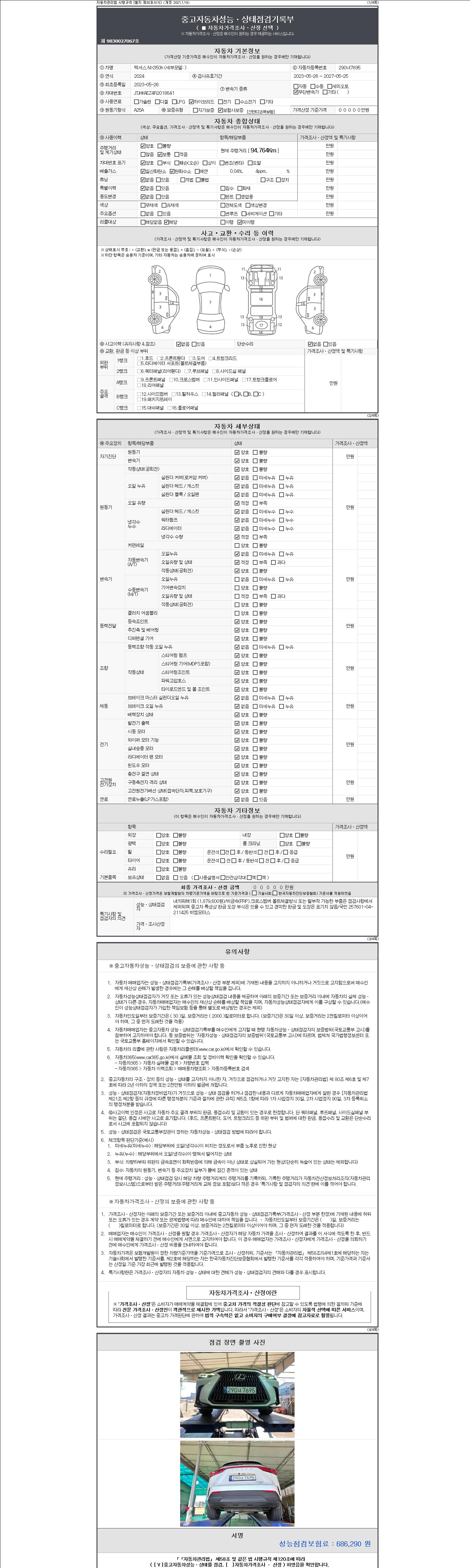 | 주행거리 | 94,764 km | 차량번호 | 290너7695 | 사고유무 | 성능기록부 참조 | 제시번호 | 제 2147483647 호 |