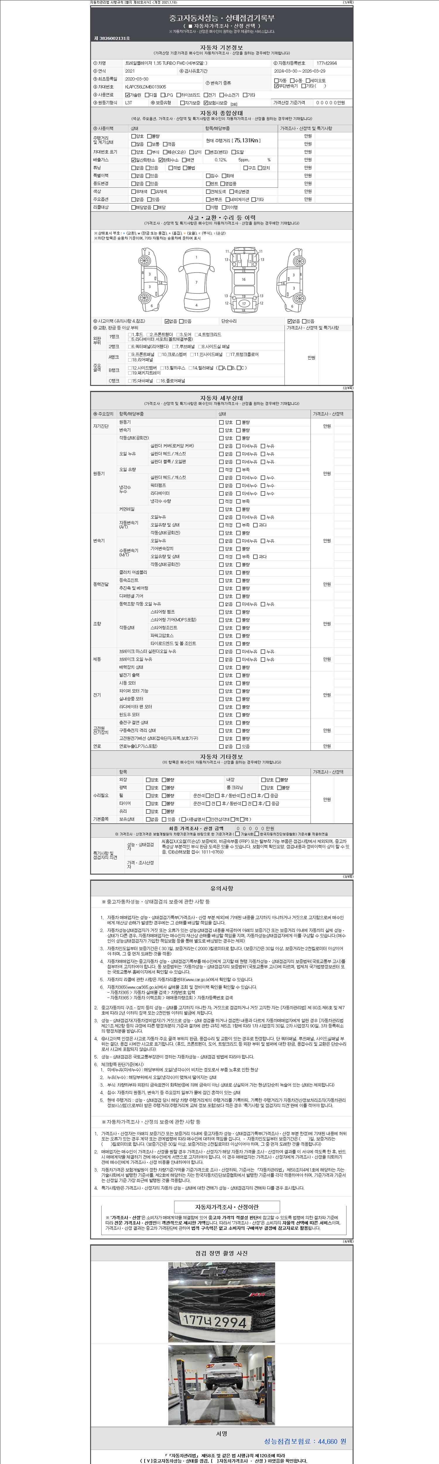 | 주행거리 | 75,131 km | 차량번호 | 177너2994 | 사고유무 | 성능기록부 참조 | 제시번호 | 제 2147483647 호 |